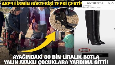 AKP'li ismin gösterişi tepki çekti! Ayağındaki 80 bin liralık botla yalın ayaklı çocuklara yardıma gitti!