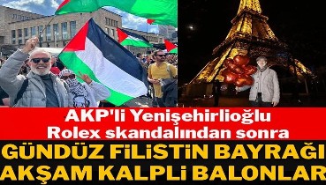 AKP'li Yenişehirlioğlu Rolex skandalından sonra: Gündüz Filistin bayrağı akşam kalpli balonlar