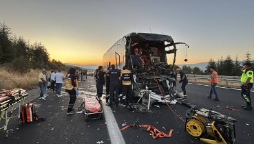 Bolu geçişinde yolcu otobüsü ile soğan yüklü kamyon