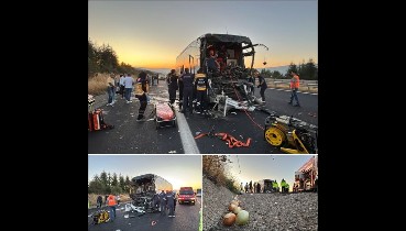 TEM’de yolcu otobüsü ile soğan yüklü kamyon çarpıştı