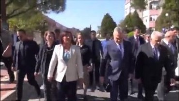 Akp'ye geçen kadına, geçtiği partinin elemanları tarafından omuz atılıyordu.