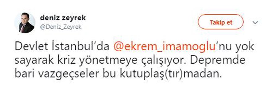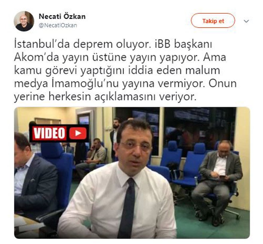 İstanbul halkı, son günlerde deprem paniği ile yaşıyor. Dün gerçekleşen ve 6 şiddetinde hissedilen deprem korkuları artırdı. Yetkililer, her gün defalarca açıklama yapıyor. İBB Başkanı Ekrem İmamoğlu da süreci yakından takip ediyor ve halkı bilgilendirici açıklamalar yapıyor. Ancak birtakım medya kuruluşları İmamoğlu’nun açıklamalarını yayınlamıyor. Söz konusu durum özellikle sosyal medyada kullanıcıların tepkisini çekmeyi sürdürüyor.