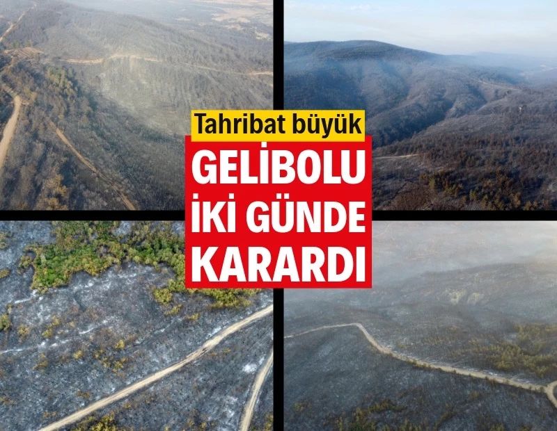 Çanakkale Gelibolu’daki orman yangını kontrol altına alındı: Yanan alanlar dronla görüntülendi