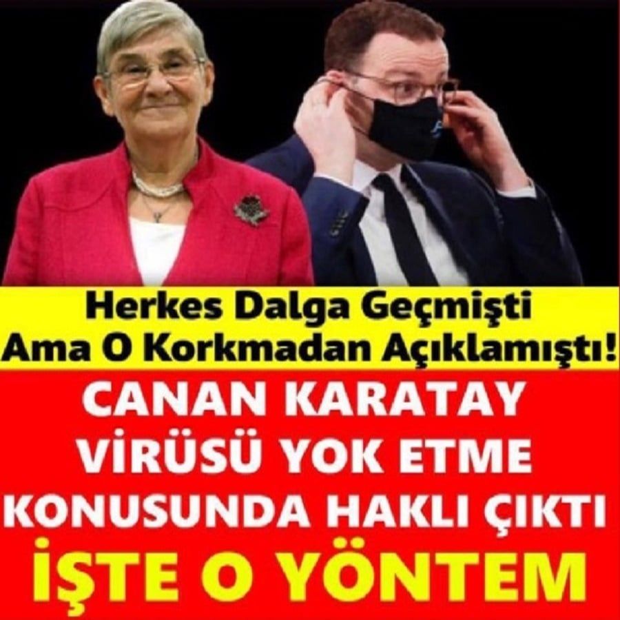 Karatay haklı çıktı Prof. Dr. Canan Karatay, gargara yapmanın korona virüse karșı korucu etkisi olduğunu dile getirmiști. Türkiye’de dalga konusu olan açıklamalara Almanya Sağlık Bakanı’ndan da destek geldi. Karatay’ın açıklamalarında haklı olduğu ortaya çıktı. Almanya Sağlık Bakanı Jens Spahn; Korona virüse karșı korunma önlemlerinden biri olarak “Gargara” yapmayı da tavsiye etti. Bakan Spahn, tam bir araștırma ya da bilimsel bir sonuç olmamasına karșın, korona virüsün en çok yayıldığı bölgelerden olan ağız içinin temizliğinin önemli olduğuna dikkat çekti. Alman gazetesi Neuen Zeitung’a konușan Bakan Spahn, corona virüsünün yayılmasının gargara sayesinde azalacağından umutlu olduğunu vurguladı. Spahn, “Ağzı temizlemek için alkolde ya da sofra tuzunda çözülmüș uçucu yağlarla, tuzlu gargarayla yapılan ağız çalkalama, ağız ve boğaz bölgesindeki viral yükü azaltır.” dedi.