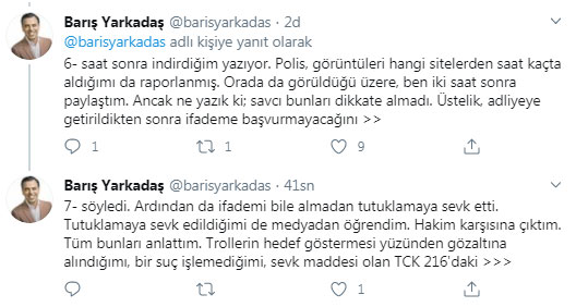 Polis, görüntüleri hangi sitelerden saat kaçta aldığımı da raporlanmış. Orada da görüldüğü üzere, ben iki saat sonra paylaştım. Ancak ne yazık ki; savcı bunları dikkate almadı. Üstelik, adliyeye getirildikten sonra ifademe başvurmayacağını söyledi. Ardından da ifademi bile almadan tutuklamaya sevk etti. Tutuklamaya sevk edildiğimi de medyadan öğrendim.