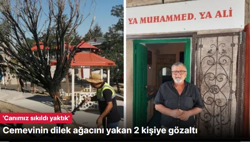 Otomobille cemevine gelen 2 kişiden biri araçtan inip, bez bağlama bahanesiyle yanına yaklaştığı dilek ağacını ateşe verdi. 2 kişi daha sonra aynı araçla kaçtı. Dilek ağacındaki yangın hortumla su tutularak kısa sürede söndürüldü. Kaçan 2 kişi de jandarma tarafından yakalanarak, gözaltına alındı. Şüphelilerin sorgusu sürüyor.