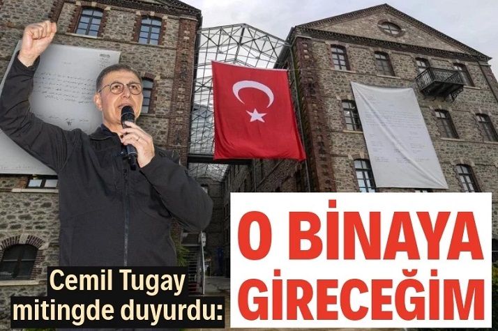 - Milyonlarca İzmirli’nin hakkını yemeye kimsenin hakkı yok. Meslek Fabrikası’na da başka yapılara da el koyma, polis marifetiyle el koyma hakkı yok. Ben Cemil Tugay olarak söylüyorum. O binaya gireceğim. O davaları kazanacağız.“