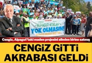 Bu günlerde köylülerin eylemlerle karşı çıktığı, Cengiz Holding’e ait Eti Bakır’ın projesi olarak bilinen maden alanının artık Mehmet Cengiz’in olmadığı ortaya çıktı. Eti Bakır’ın ÇED raporu için başvurduğu Alpagut-Atalan Altın Madeni Projesi için önceki gün bilirkişi keşfi yapılmıştı. Keşif haberinin ardından Mehmet Cengiz’in sahibi olduğu Cengiz Holding gazetemize yaptığı açıklamada, “Eskişehir’deki Alpagut-Atalan Altın Madeni Projesi Cengiz Holding, grup şirketi olan Eti Bakır ya da herhangi bir grup şirketimize ait değildir” dedi.