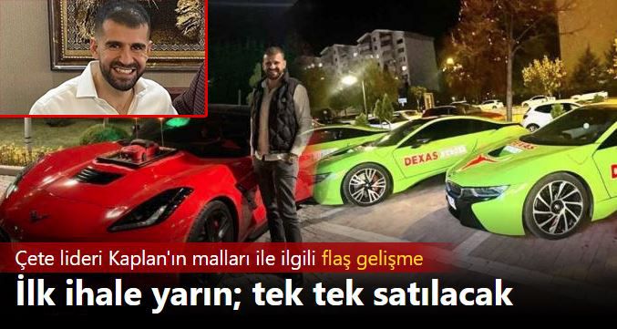 Edinilen bilgilere göre, Kaplan ve adamları adına kayıtlı lüks otomobiller de süreç içinde ihale ile satılacak.