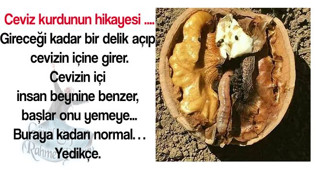 Ama çıktığında mevsim bitmiş, ortada aç ve cılız bir kurtçuk ile bir içsiz ceviz kalmıştır… iste bazi Isanlar Tipki Bu Kurtcuk Gibidirler... Yerken Dunya Umurlarinda degil Ama sonu..
