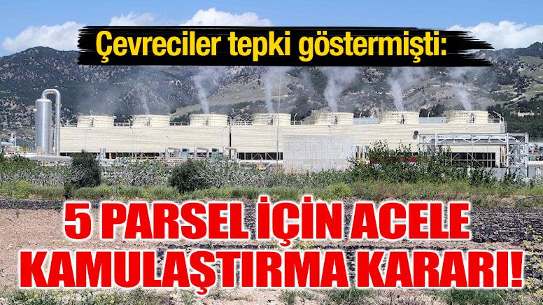 Resmi Gazete'nin bugünkü sayısında Denizli'nin Sarayköy ilçesindeki Tekke ve Kabaağaç köylerinde yer alan 5 ayrı parsel için acele kamulaştırma kararı çıktı. Kararda jeotermal enerji santrali (JES) üretim tesisi kurulması amacıyla belirlenen 5 parselin hazine adına tescil edilmek üzere EPDK tarafından kamulaştırılacağı belirtildi.