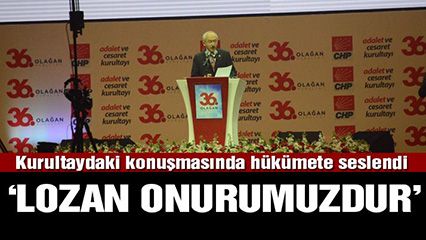 “Bu kurultay tanımında terör örgütü tarafından aldatılanlar yoktur. Bu kurultay salonunda terör örgütleri ile pazarlık kuranlar yoktur. Bu kurultay salıonunda terör örgütleri ile aynı menzile yürüyenler yoktur. Devletin haremini yani namusunu terör örgütüne teslim edenler yoktur. Bu kurultay salonunda terör örgütlerine “Ne istediniz de vermedik” diyenler yoktur. Vatan toprağını terör örgütlerine teslim edip Süleyman Şah Türbesi’ni kaçıranlar yoktur. Kendi vatanında vergi ödedememek için Man Adaları’nda şirket kuranlar yoktur. Bu kurultay salonunda namussuzlar kadar cesur olmaya ant içmiş namuslular vardır. Bu nedenle kurultayın adı ‘Adalet ve cesaret’tir. Adaleti ve cesareti bir arada götüreceğiz. Ülkemizin genel durumu şöyle. Bugün beş temel sorunla karşı karşıyayız. Karamsar bir tablo var. Bu tablo kaygıları derinleştiriyor. Oysa 2002’de iktidar olduklarında Türkiye’nin bir temel sorunu vardı. Bu bazen Kürt sorunu, bazen toplumsal barış, bazen Güneydoğu sorunu olarak dillendirildi. Demokrasi, ekonomi, eğitim ve dış politika sorunları eklendi. Sorunlar giderek derinleşmeketedir. Biz CHP solarak sadece sorunları dile getiren değil her sorunun üzerine kararlılıkla yürüyen bir partiyiz…”