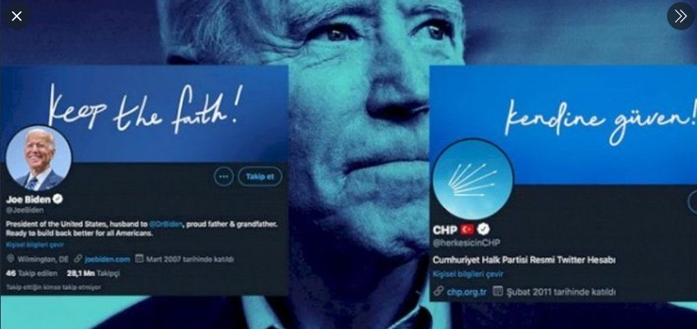 CHP Genel Merkez sosyal medya hesaplarının ABD Başkanı Joe Biden'ın sosyal medya hesaplarını birebir taklit ettiği ortaya çıktı. Sloganlar ve görsel tasarımlar aynı elden çıkmış gibi.
