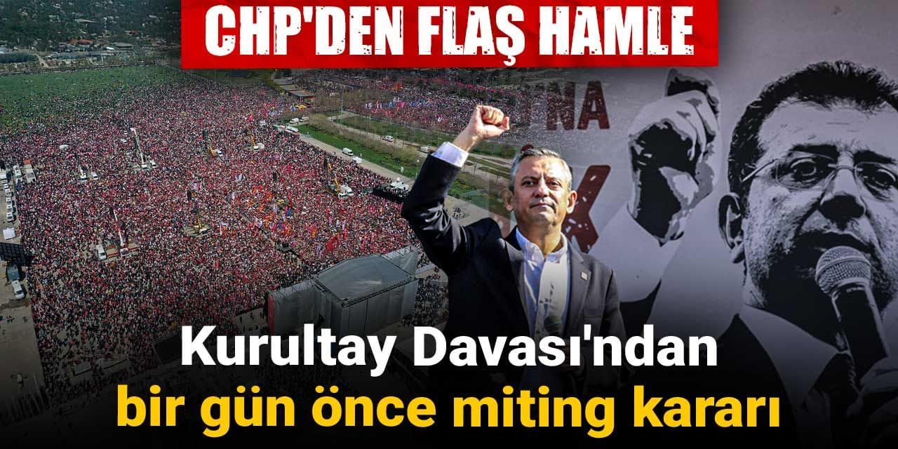 Olağanüstü kongreye gidilmesi için başvuruda bulunan CHP'den flaş bir hamle geldi. CHP, kurultay iptal davasının görüleceği 15 Eylül Pazartesi gününden bir gün önce 14 Eylül Pazar günü Ankara'da miting kararı aldığı belirtildi.