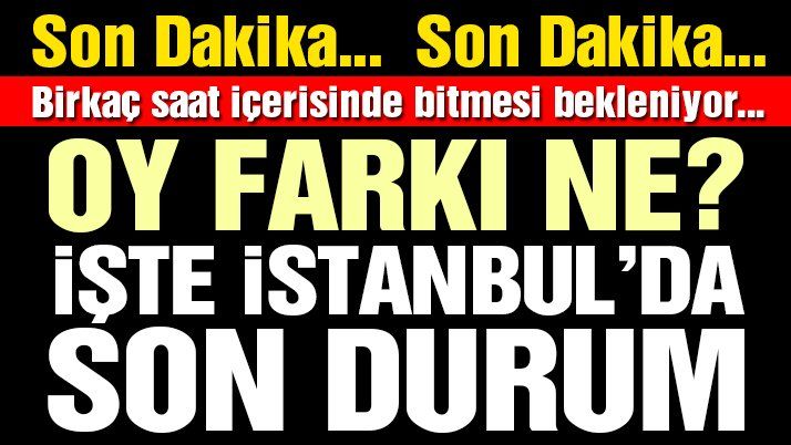 “Şu an itibariyle İstanbul’da 31 bin 186 sandığın 30 bin 242’si sayılmış durumda. İstanbul’un Pendik, Esenyurt, Avcılar ve Maltepe ilçelerinde sayımlar devam etmekte. Bugün birkaç saat içinde bitecek. Maltepe ilçesindeki sayımlar MHP’nin başvurularıyla yavaşlatılıyor.