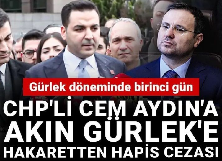 CHP Gençlik Kolları Genel Başkanı Cem Aydın'ın, eski İstanbul Cumhuriyet Başsavcısı yeni Adalet Bakanı Akın Gürlek ile ilgili bir video paylaşımı nedeniyle yargılandığı davada karar çıktı. Cem Aydın'a hakaret suçunu işlediği gerekçe gösterilerek 1 yıl 5 ay 15 gün hapis cezası verildi.