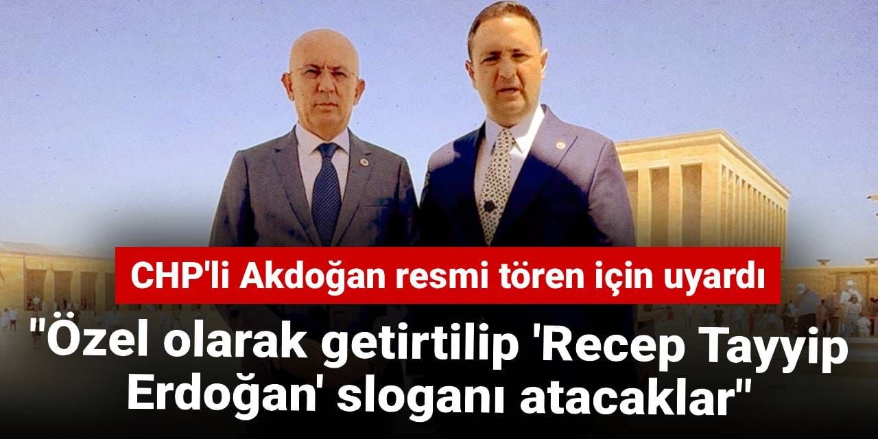 Akdoğan, geçen yıllarda resmi törenlerde bir grubun tören sırasına alana gelip "Recep Tayyip Erdoğan" sloganları attığını hatırlatarak, yarında aynısının tekrarlanmaması için çağrıda bulundu.