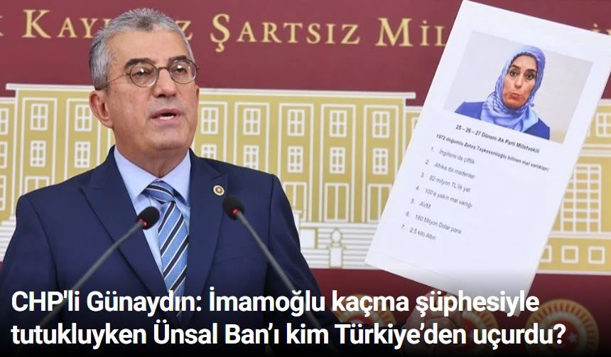 Günaydın, "Türkiye bir olağan dışı işle yeniden karşılaştı. Ünsal Ban denilen kişi bu sabah yurt dışına kaçtı. Ünsal Ban, bugüne kadar 4 ayrı davadan yargılanıyor ve bunlardan 3’ü hakkında yurt dışı çıkış yasağı ile cezalandırılmış bulunuyordu. Sedat Peker’in iddiaları ve daha sonra ortaya çıkan belgelerden ortaya çıktığı üzere eski eşi, AKP’nin 25, 26 ve 27. dönem milletvekili Zehra Taşkesenlioğlu ve onun kardeşi SPK Başkanı ile birlikte sermaye artırımı yapan şirketlerden rüşvet aldıkları iddiası ile hakkında çok sayıda isnat vardı. 36 gün tutuklandıktan sonra etkin pişmanlıktan yararlanmak suretiyle tahliye edilmişti. Hakkındaki iddialar hiçbir şekilde bir somut gerçekliğe ve maddi yargıya kavuşturulmamış olan bir kişi nasıl oluyor da yurt dışına kaçabiliyor ve hakkındaki yargılamayı sonuçsuz bırakabiliyor? Biz, Ünsal Ban’ın kaçışını sadece bir kriminal vaka olarak değerlendirebilir miyiz? İSKİ Genel Müdürümüz, eski kaymakam eski mülkiye müfettişi Şafak Basa, kaçma ihtimali bulunduğu gerekçesiyle ev hapsi ile cezalandırılmış ve hala ev hapsindeyken. Türkiye’nin en iyi restoratörlerinden ve tarihi yapıları korumasıyla ünlü Mahir Polat, hala ev hapsi altındayken; Ekrem İmamoğlu, İBB’nin seçilmiş Başkanı kaçma şüphesiyle tutuklu bulunuyorken Ünsal Ban’ı kim Türkiye’den uçurdu?" dedi.