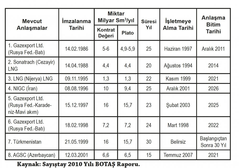 Bu yüzden alıcı ülke gelecek doğalgaz ihtiyaçlarını doğru planlamalı ve alacağı miktar kadar gaz anlaşması yapmalıdır. İşte ilk büyük soygun tam bu noktada yapıldı… Yapılan anlaşmalar aşağıda...