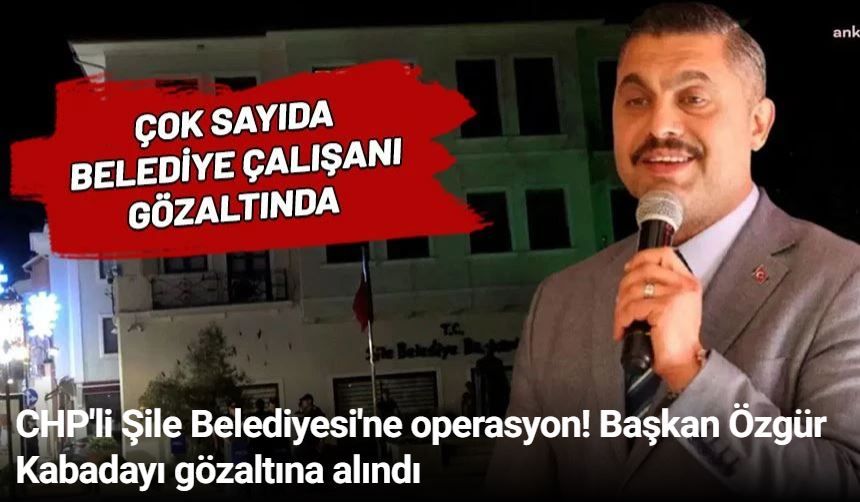 Şile Belediye Başkanı Özgür Kabadayı ve belediyeden bazı kişilerin gözaltına alındığı öğrenildi. Gözaltına alınan isimler arasında eski Özel Kalem Müdürü Oğuz Kaçmaz ve Belediye Başkan Yardımcısı Tuncay Tolga Özçakmak olduğu ifade ediliyor.