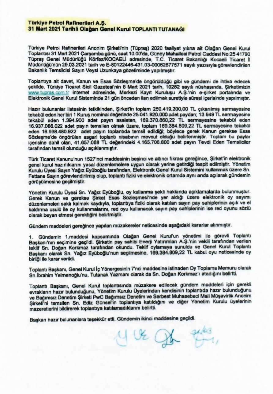 Kaynak: TÜPRAŞ 2021 Yılı Genel Kurul Tutanağı"