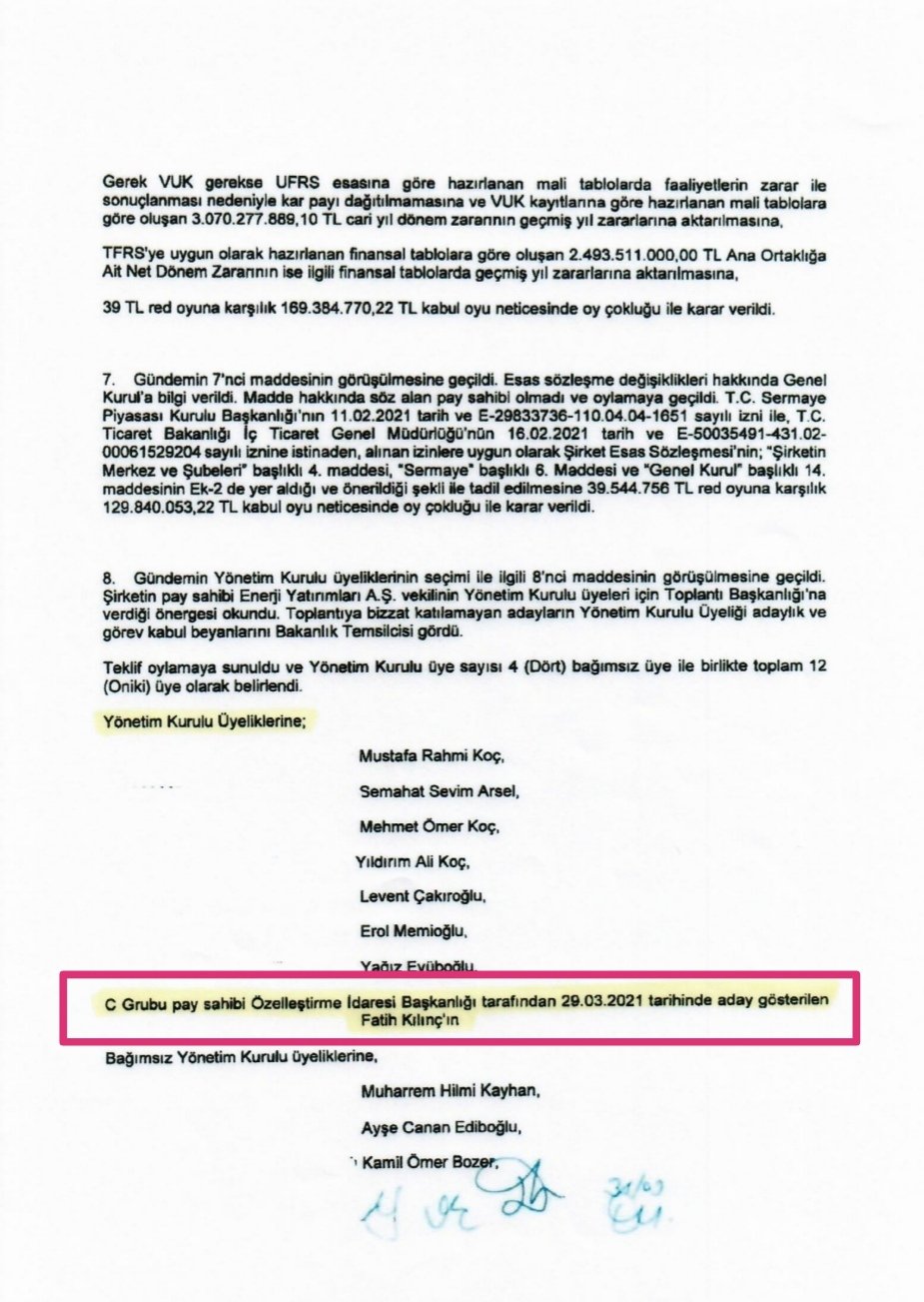 CHP Zonguldak Milletvekili Deniz Yavuzyılmaz, Hazine ve Maliye Bakanlığı Daire Başkanı Fatih Kılınç'ın aynı zamanda TÜPRAŞ Yönetim Kurulu Üyesi olduğunu gösteren belgeyi sosyal medya hesabından paylaştı.