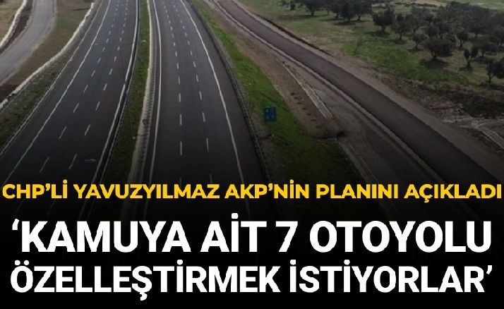 CHP'li Yavuzyılmaz, söz konusu 7 otoyolun toplam uzunluğunun bin 205 kilometre olduğunu vurguladı. Türkiye'de kamunun ücretli işlettiği toplam otoyol uzunluğunun da aynı rakama ulaştığını belirten Yavuzyılmaz, "Yani AKP, Türkiye’de kamunun ücretli olarak işlettiği tüm otoyolları özelleştirmenin peşinde" ifadesini kullandı.