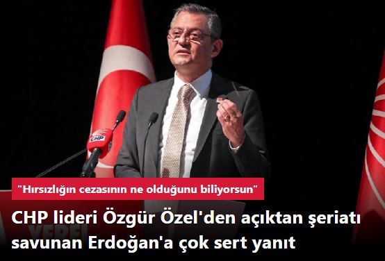 Özel, "Şeriat dediğin kurallar 'pozitif hukukun yerinde olsun' dersen iyi düşün... Hırsızlığın cezasının ne olduğunu biliyorsun. Uygulanırsa bir tane parmağın, elin, dilin kalmaz senin dilin" dedi.