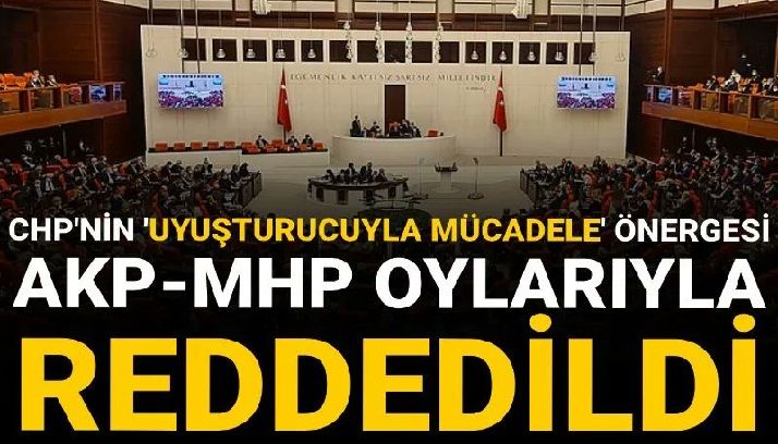 CHP, TBMM Genel Kurulu'na uyuşturucu kullanımı ve etkin çözüm yollarına ilişkin önerge sundu. CHP'nin, 'uyuşturucuyla mücadele' önergesi AKP ve MHP oylarıyla reddedildi.