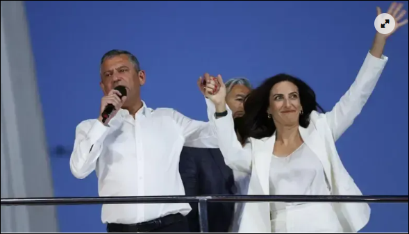 CHP Genel Başkanı Özgür Özel, mitingde yaptığı konuşma sırasında Rızvanoğlu ve Avşar'ın rozetlerini parti otobüsünden takdim etti.