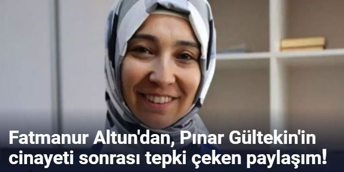 Cumhurbaşkanlığı İletişim Başkanı Fahrettin Altun’un eşi Fatmanur Altun, Muğla'da Cemal Metin Avcı adlı erkek tarafından öldürülen Pınar Gültekin'in cinayeti sonrası sosyal medya hesabından tepki çeken bir paylaşımda bulundu. Altun, 'katili atlayıp hükümete çatabilirler yine' ifadesini kullandı.