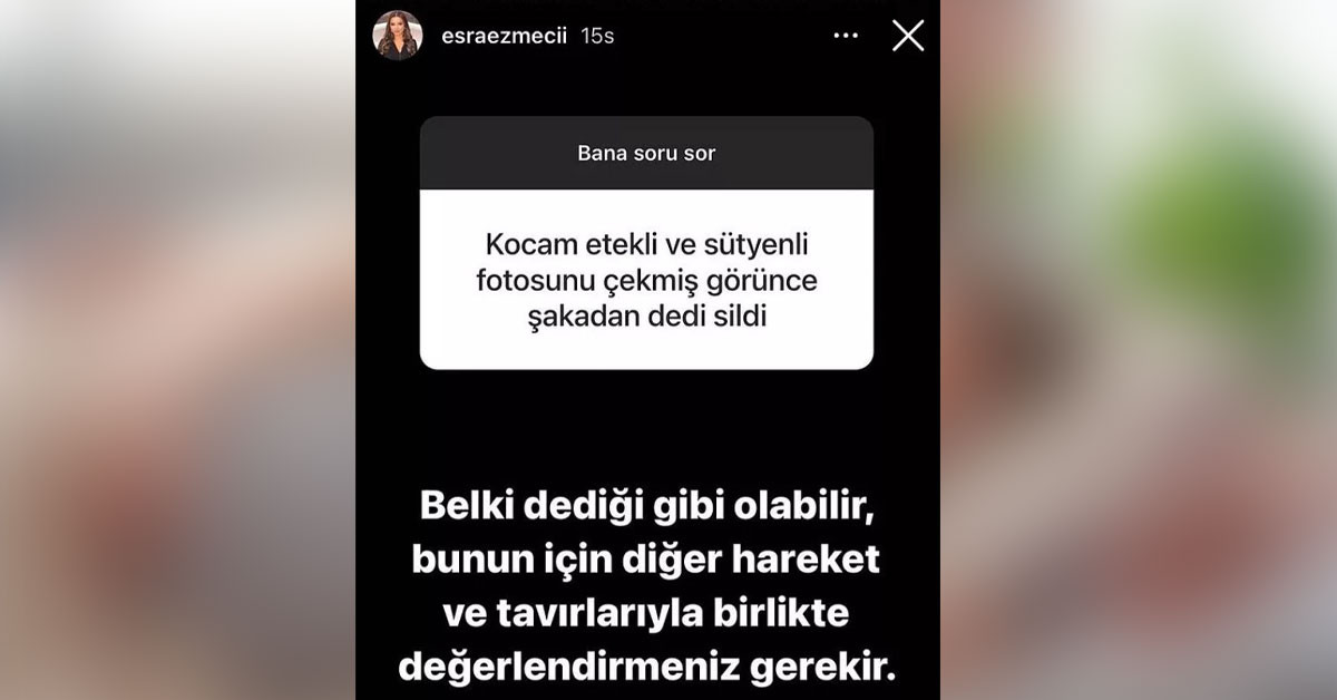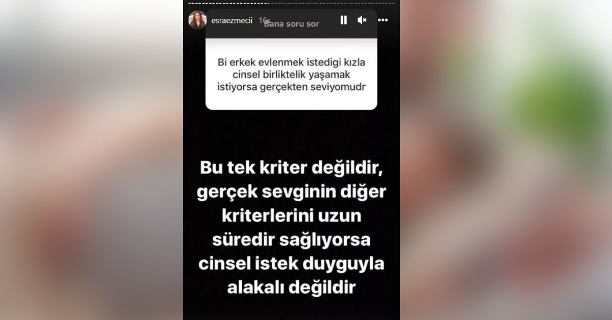 Sosyal medya hesabını oldukça aktif kullanan Esra Ezmeci bu sefer de kendisine gelen aşırı ilginç bir soru ile gündeme geldi. Aşk ve evlilik hayatı ile ilgili çıkmaza giren kişilere tavsiye veren Esra Ezmeci bazen çok ilginç sorulara maruz kalıyor. Ne cevap vereceğini bile bilemeyen Ezmeci en çok bu tür sorularda zorlandığını ifade ediyor.
