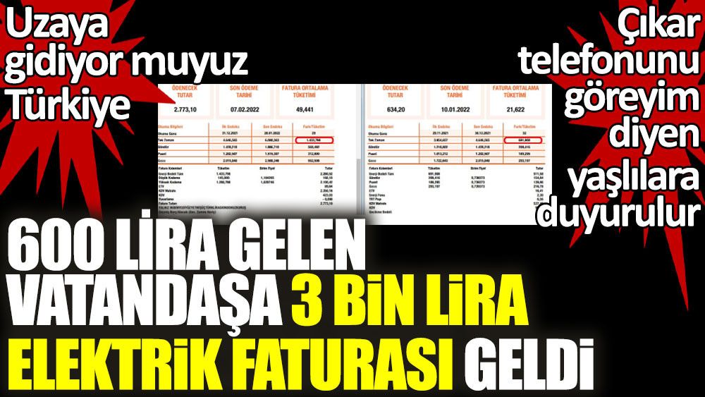 Tarifeli fatura sistemi devreye girmeden önceki ay ödediği faturası 634 lira olan bir vatandaş bir sonraki ay ise 2 bin 773 lira fatura ödüyor.