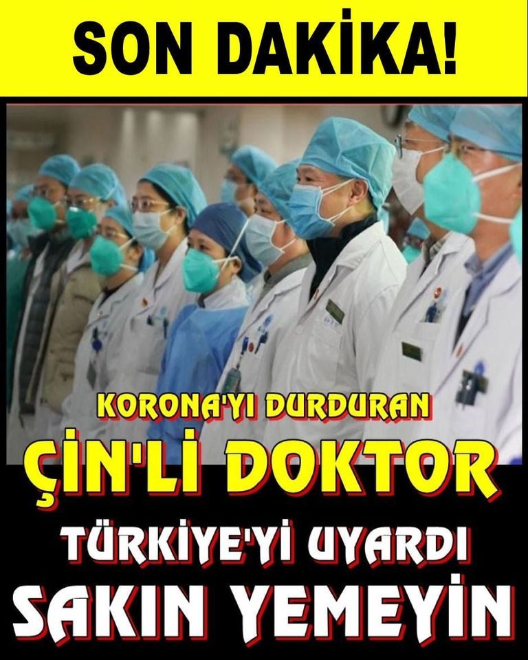 Çinli sağlık personeli ve tıp uzmanları her zaman sizinle; salgınla mücadele ve tedavi deneyimlerini paylaşmaya, Türk halkının en kısa zamanda salgını yenmesine yardımcı olmaya hazırız. Beraber başaracağız. Kaynak: Çin'de salgını durduran doktor Türkiye'yi uyardı