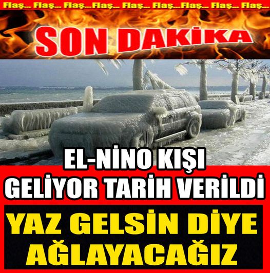Meteoroloji Uzmanı Kerem Ökten, yaptığı açıklamada, Ekim ayından itibaren Türkiye'ye El Nino kışı geleceğini ve yaz gelsin diye ağlayacağımızı söyledi. Meteoroloji Uzmanı Kerem Ökten yaptığı açıklamada, "Ekim ayından itibaren Türkiye'ye El Nino kışı gelecek. Yaz gelsin diye ağlayacağız" ifadelerini kullandı.