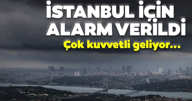 Son dakika haberine göre; İstanbul'a çok kuvvetli yağış geliyor. Meteoroloji'den yapılan açıklamada, "Yerel olarak kuvvetli (2150 kg/m2) sağanak ve gök gürültülü sağanak yağış beklendiğinden sel, su baskını, yıldırım, yerel dolu yağışı, yağış anında kuvvetli rüzgar, hortum, ulaşımda aksamalar gibi olumsuzluklara karşı dikkatli ve tedbirli olunmalıdır" dedi, 'Sarı alarm' verdi