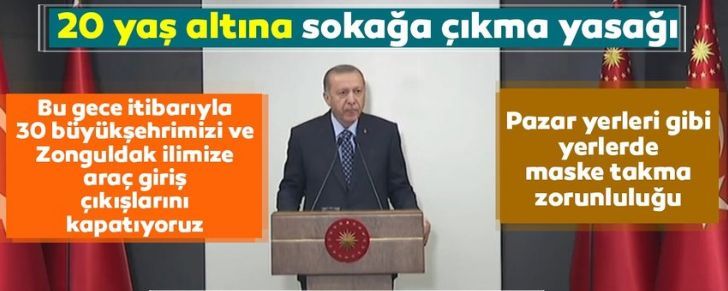 Ülkemizin tamamında 20 yaş altı, 1 Ocak 2000 ve üzeri doğumlular için de sokağa çıkma yasağı getiriyoruz.