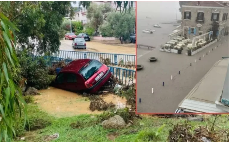 İzmir’in Foça ilçesinde etkili olan sağanak yağış kentte hayatı felç ederken; deniz ve karanın birleştiği anları gösteren fotoğraf felaketin boyutlarını gözler önüne serdi.