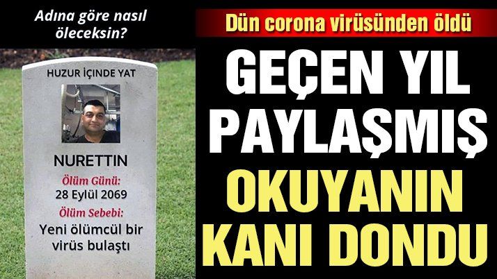 Nurettin Çınar’ın, geçen yıl 11 Kasım’da sosyal medya hesabında, “Adına göre nasıl öleceksin” uygulamasının “ölümcül bir virüs” yazan sonucunu paylaştığı görüldü.