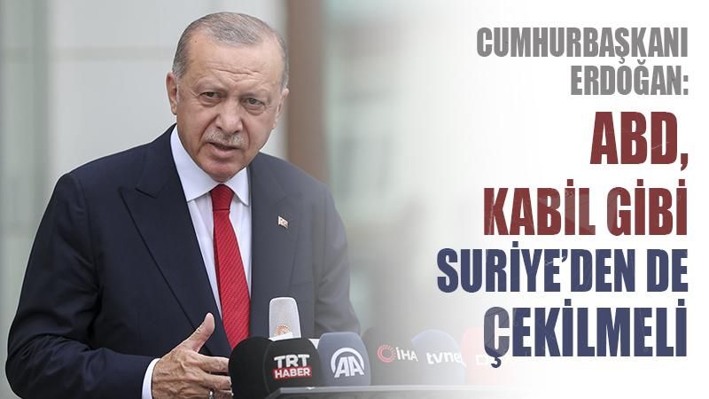 “Suriye’deki 900 ABD askerinin kalmasını mı yoksa gitmesini mi istiyorsunuz?” sorusu üzerine Cumhurbaşkanı Erdoğan, “Tabi ki benim burada tasarrufum olursa Suriye’den çıkmalarıdır, Irak’tan çıkmalarıdır; Afganistan’dan çıktıkları gibi çıkmalarıdır. Çünkü eğer dünyada biz barışa hizmet etmeyi istiyorsak barış için o bölgelerde kalmanın hiçbir anlamı yok. Bırakalım o bölge halkı, o bölgedeki yönetim kararını kendisi versin.” diye konuştu.