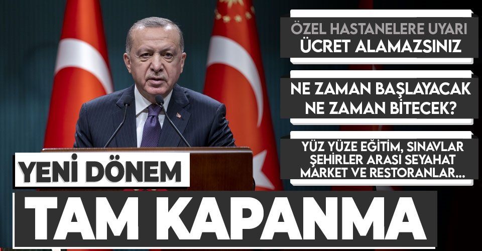 29 Nisan 2021 perşembe akşamı 19:00'dan başlayıp, 17 Mayıs pazartesi 5'e kadar sürecek şekilde tam kapanmaya geçiyoruz. Bu tarihler arasında kesintisiz sokak kısıtlaması uygulanacaktır.
