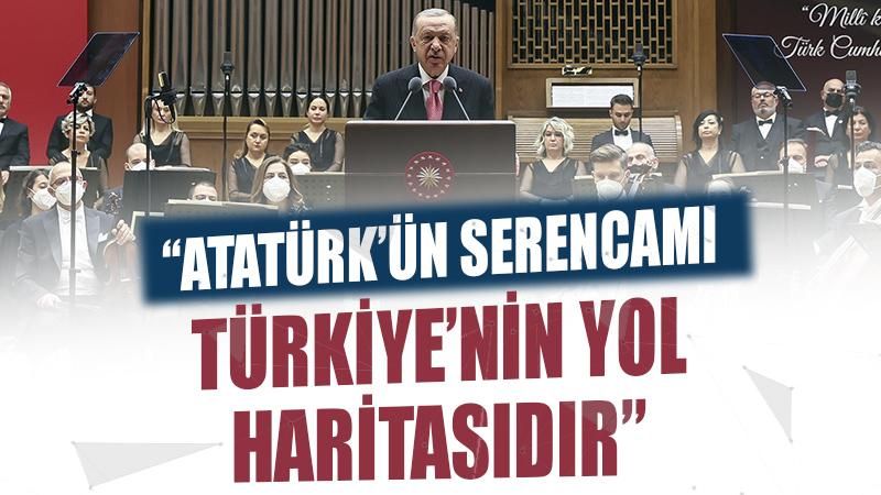 "Atatürk'ü anmak elbette önemlidir ama asıl olan Atatürk'ü verdiği mücadelenin izini sürerek gerisindeki sebepleri doğru şekilde tespit ederek anlamaktır." diyen Erdoğan, şöyle konuştu: