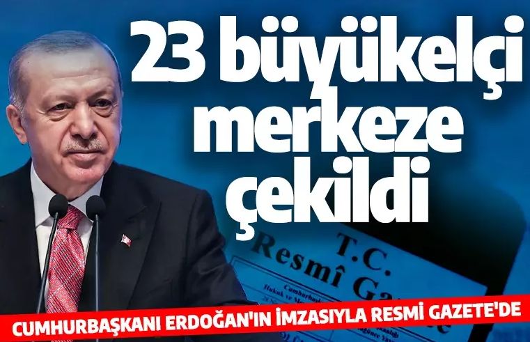 Cumhurbaşkanı Recep Tayyip Erdoğan'ın imzasıyla 23 dış temsilcilikteki Büyükelçi merkeze alınırken, 25 dış temsilciliğe yeni Büyükelçilerin atanmasına ilişkin Cumhurbaşkanı Kararı Resmi Gazete’de yayımlandı.Karara göre, aralarında Finlandiya ve İsveç büyükelçilerinin de yer aldığı 23 büyükelçi merkeze çekildi. Büyükelçiliklere yeni atamalar gerçekleştirilirken, Finlandiya Büyükelçiliği'ne Yurt Dışı Tanıtım ve Kültürel İşler Genel Müdürü Deniz Çakar, İsveç Büyükelçiliği'ne ise İkili Siyasi İşler Genel Müdürü Yönet Can Tezel getirildi.