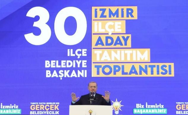 İzmir'in "gerçek belediyeciliği" tercih edeceğine inandığını belirten Erdoğan, "Bizim adaylarımız belediye başkanlığı koltuğunda oturanlar gibi gözü, kalbi, aklı başka yerde olan kişiler değildir ve olmayacaktır." dedi.