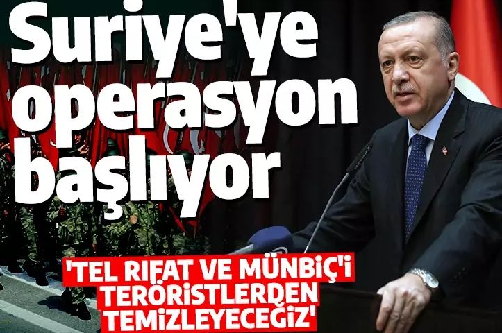 Cumhurbaşkanı Erdoğan, AK Parti Grup Toplantısı'nda yaptığı konuşmada, 'Tel Rıfat ve Münbiç'i teröristlerden temizliyoruz' diyerek sınır ötesi operasyon haberini duyurdu.