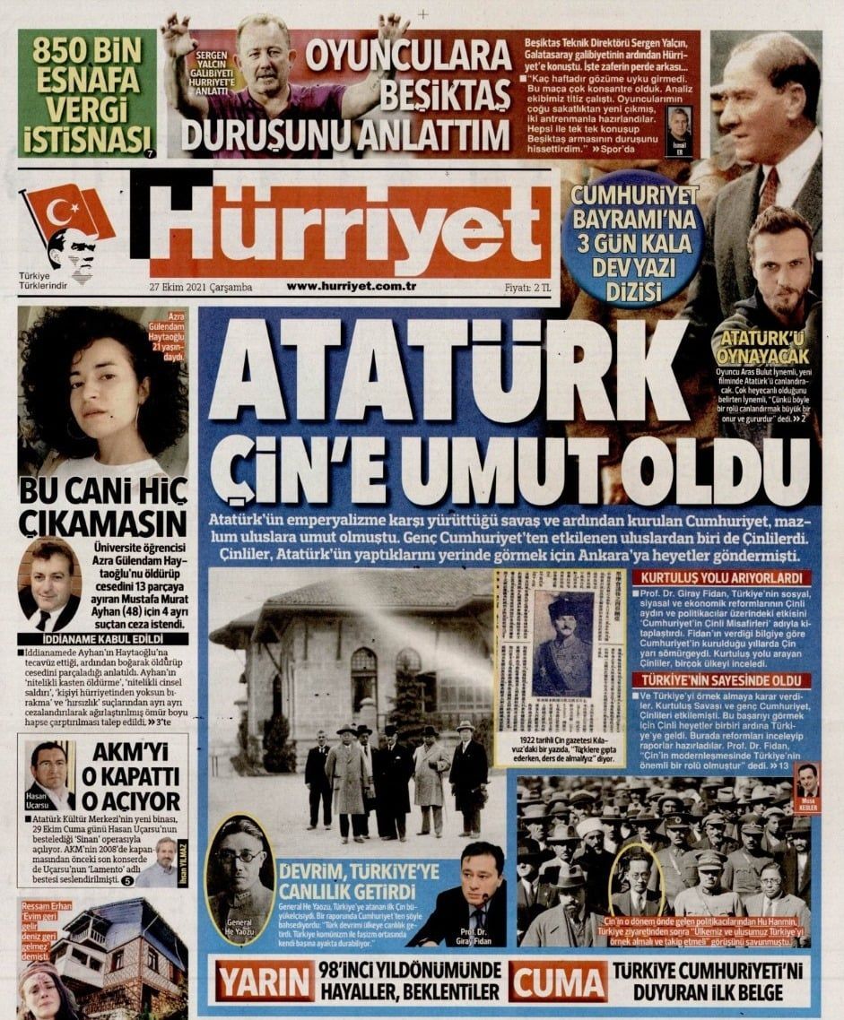 Fidan’ın araştırmasında Çin aydınlarının İstiklâl Savaşı sürecinde ve sonrasında Türkiye’yi ziyaretlerine dair yazılarından da örnekler var. Bunlardan biri o dönemin en ünlü Marksist teorisyenlerinden Cai Hesen’e ait. Çin’in ilk komünist gazetesi Kılavuz’daki 1922 tarihli yazısında Hesen şu ifadeleri kullanıyor: “400 milyon (Çinli) kardeşimiz bakın, ezilen Türkler, emperyalist güçlere karşı büyük bir zafer kazandılar. Milliyetçi partileri onları zafere giden yola çıkardı. Onlara gıpta ederken bir yandan da onlardan ders almalıyız! Bizim partimizi de (KMTÇin Milliyetçi Partisi) Çin’e baskı yapan emperyalistlere karşı Sovyet Rusya ile işbirliğine çağırın. Türkiye’nin Yakındoğu’daki büyük zaferini lütfen görmezden gelmeyin. Ezilen Türkiye’nin zaferi çok yaşa!”