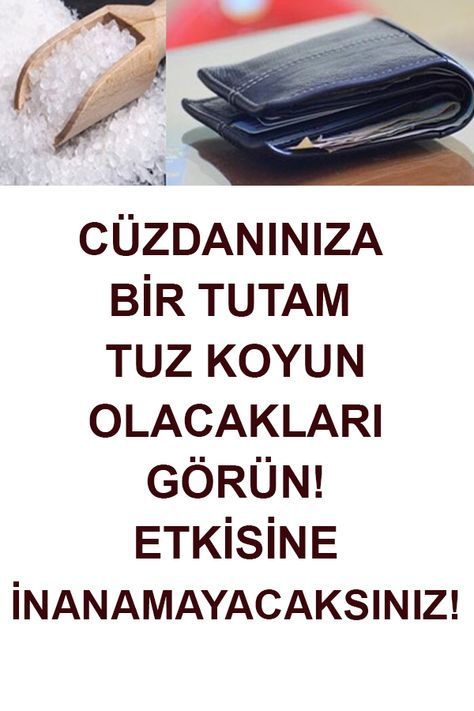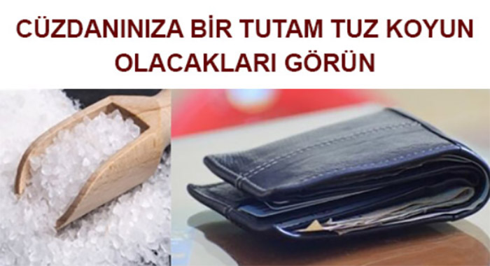Cüzdanınızın içine bir tutam tuz koyun ve olanlara şahit olun. Cüzdanınızın içine bir tutam tuz koyun ve muci zeye şahit olun..size vereceğimiz bu yöntemi uygulayabilirsiniz! Cüzdanınızın içine bir tutam tuz koyun. Tuz,