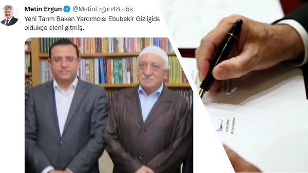 Bakan Yardımcılığına atanan Ebubekir Gizligider'in ise FETÖ lideri Fethullah Gülen ile yan yana bir fotoğrafı ortaya çıktı. İYİ Parti Milletvekili Metin Ergun, Twitter hesabından Gizligider'in fotoğrafını paylaşıp "Yeni Tarım Bakan Yardımcısı Ebubekir Gizligider. Hiç de gizli gitmemiş, oldukça aleni gitmiş" diye yazdı.