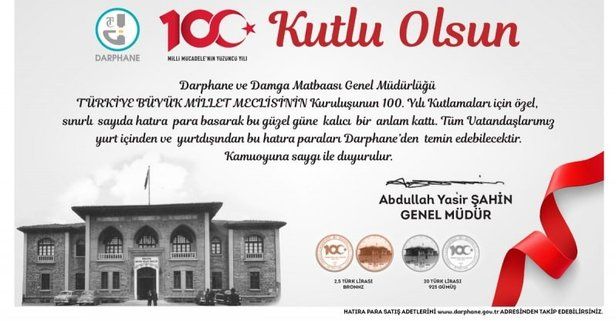 Darphane ve Damga Matbaası Genel Müdürlüğü TBMM'nin Açılışının 100. Yılına özel bir para hazırladı.