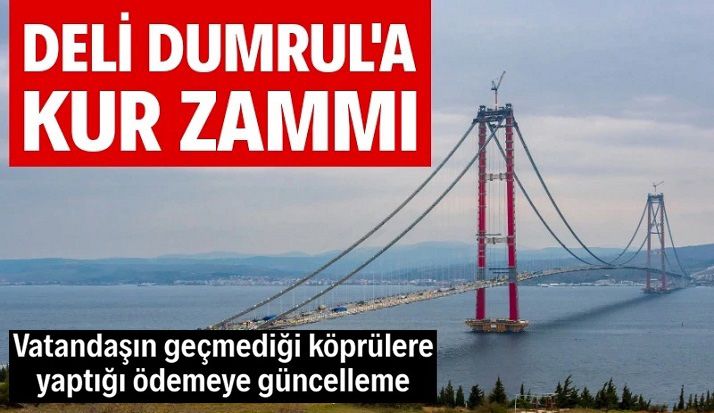 Hazine'nin şirkete köprüden geçen her araç için ödeyeceği fark tutarı 1.565 TL’ye yükselecek. Çanakkale Köprüsü’nde; Geçen araç ücreti 795 TL olarak kalacak ancak Hazine'nin şirkete garanti ettiği araç geçiş ücreti 1.029 TL’ye çıkıyor. Hazinenin şirkete köprüden geçen her araç için ödeyeceği fark tutarı 234 TL’ye yükselecek.